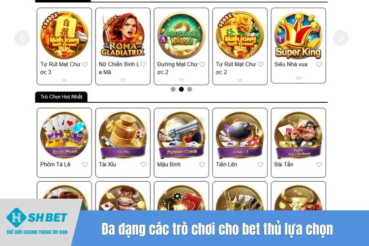 Đa dạng các trò chơi cho bet thủ lựa chọn